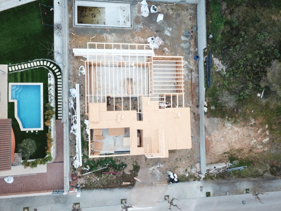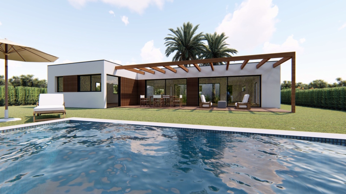 Vivienda de 260 m² en una sola planta, con cuatro dormitorios dobles y cuatro baños, actualmente en fase de ejecución.